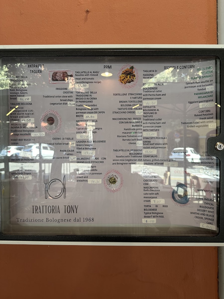 Trattoria Tony in Bologna is a charming Italian trattoria where tradition meets warmth. The menu highlights authentic regional dishes such as tortellini with pistachio, celebrated by diners for its unique and rich flavor. Pasta lovers will appreciate the perfectly textured pasta ragu, offering a milder yet satisfying taste that complements its well-crafted sauce. The Tagliatelle al Friggione Bolognese stands out with its deep, flavorful profile, reflecting genuine Bolognese culinary roots without overwhelming pork presence. Classic favorites like lasagna are crafted with care, pleasing both locals and tourists alike. The balance of hearty ingredients and subtle touches creates an inviting experience complemented by attentive, friendly staff. Whether you seek a genuine taste of Bologna or a casual spot with consistent quality, Trattoria Tony’s menu promises satisfying dishes that honor tradition while delighting the palate with every bite.